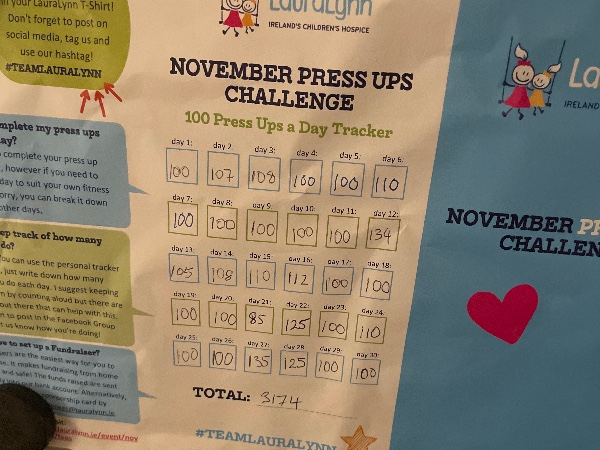 This November, I’m taking part in the November Press Up challenge to raise funds for LauraLynn, Ireland’s only Children’s Hospice. I’m taking on this challenge for children with life-limiting conditions, and their families, and would be grateful for your support.