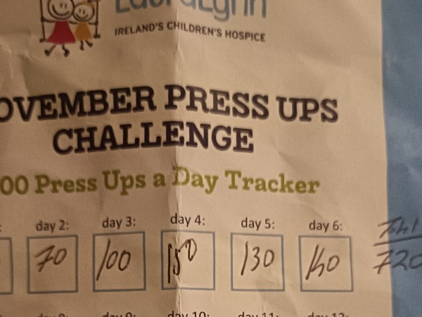 This November, I’m taking part in the November Press Up challenge to raise funds for LauraLynn, Ireland’s only Children’s Hospice. I’m taking on this challenge for children with life-limiting conditions, and their families, and would be grateful for your support.