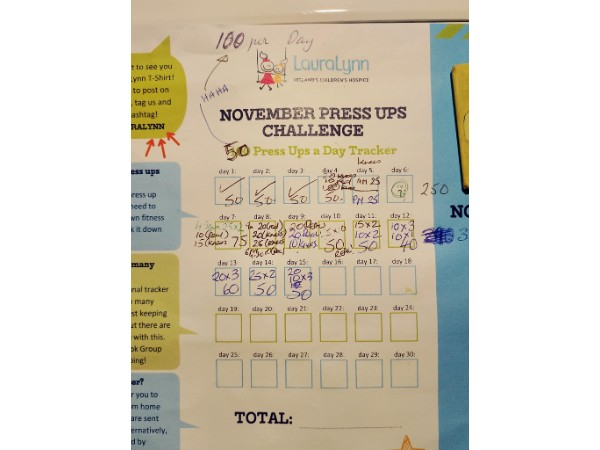 This November, I’m taking part in the November Press Up challenge to raise funds for LauraLynn, Ireland’s only Children’s Hospice. I’m taking on this challenge for children with life-limiting conditions, and their families, and would be grateful for your support.