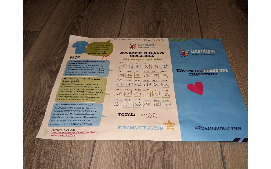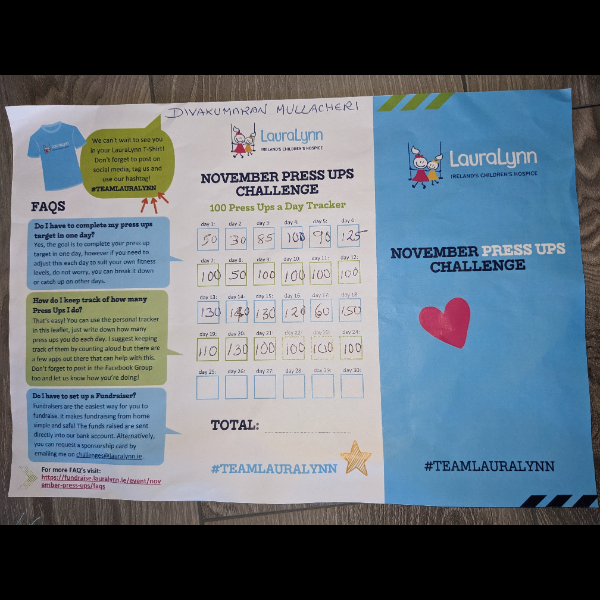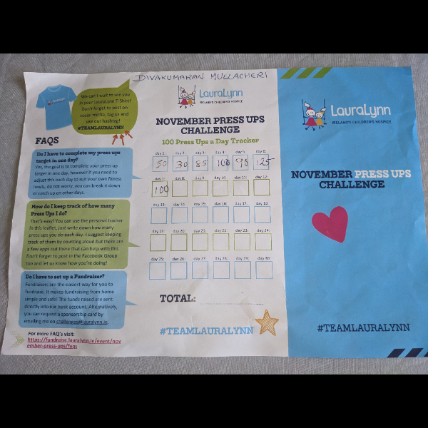 I'm fundraising for LauraLynn by taking part in the Press Up Challenge this November