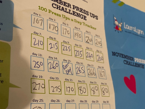 Sunday 30th Nov That’s it…it’s done…5000 press-ups in November. Thanks to everyone who supported me and donated to a fantastic cause. Share