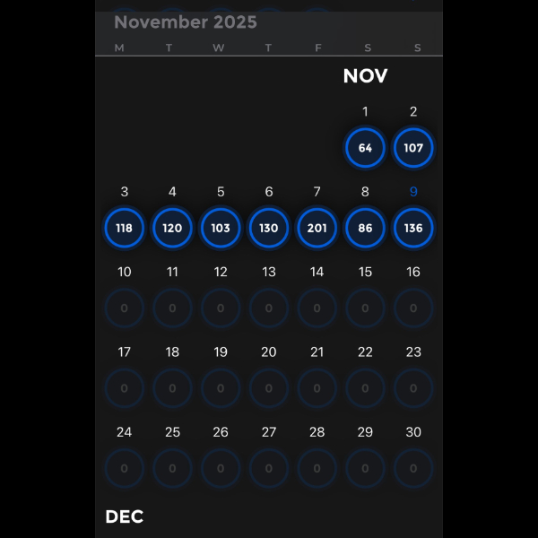Monday 17th Nov Feeling good and at 1895 as of Sunday. Goal was 1500, now going for 3000 💪🏻🎉 Share